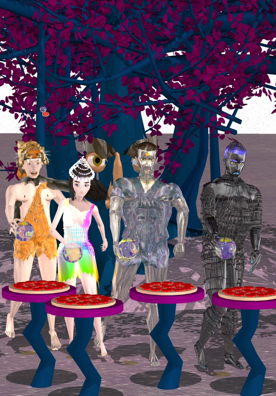 formato de pequenas mesas, sobre as quais repousam pizzas