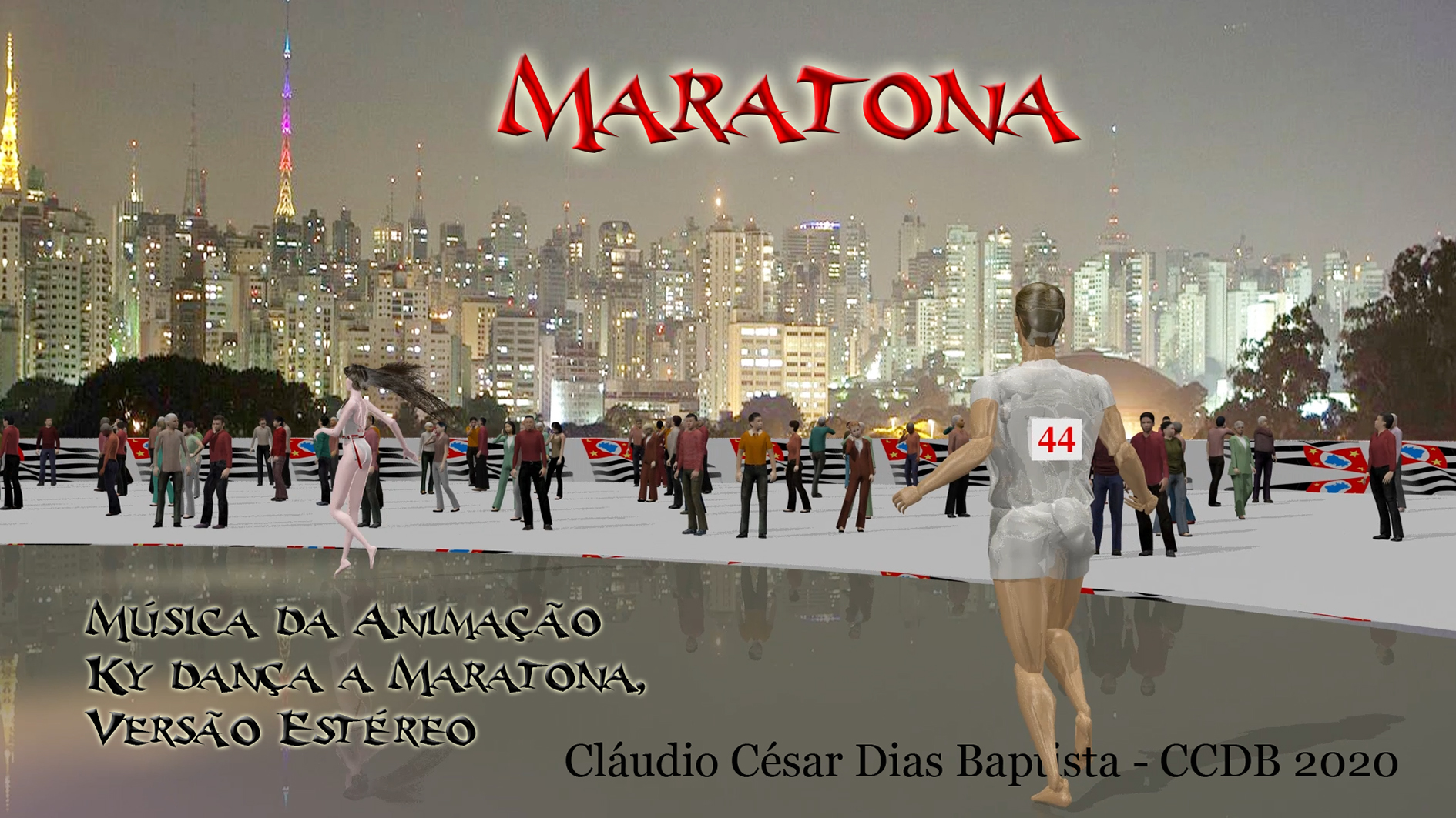 “Maratona” é a música da animação “Ky dança a Maratona” e NÃO serve, além de pela arte in se, para temporizar, sem plágios, essa animação, em computação gráfica: DIFERENTE DE VÁRIAS ANIMAÇÕES E MÚSICAS DE MINHA AUTORIA, onde precisei adotar o andamento e os compassos de obras alheias para balé (SEM PLÁGIOS, COM MELODIAS MINHAS E DIFERENTES), nas quais bailarinas e bailarinos famosos desempenham o seu papel (a partir do qual produzo o rotoscope); em “Maratona” CRIEI A PARTIR DO NADA, SÓ DA MINHA MENTE, A ANIMAÇÃO ANTES DA MÚSICA. Depois de feita a animação completa, só então compus a música, seguindo exatamente o ritmo dos passos de Ky, mas não o dos passos de Clausar, porque, como narro no livro Géa, Ky corre desafogada, fácil, tal qual dança nos palcos do Cosmo inteiro e além - todavia Clausar, que a conhece como Ansata e não sabe ser sua filha Ky; apaixonado, corre aos trancos e barrancos e até cai durante a prova - e ambos continuam a correr muito além do ponto de chegada, rumo ao Planetário do Ibirapuera (pois a competição se dá em São Paulo e os dois geóctones passam por terráqueos), para furtarem duas motocicletas: um chopper Harley Davidson e uma Egli Vincent (H.R.D. Vincent 1000cc aprimorada) - O som do helicóptero representa o daquele que consta da narrativa no Livro, a queda de Clausar também faz parte da descrição no Livro e o trecho suave, que atenua a percussão dos passos e o ruído da platéia, simboliza (com o tema da Sinfonia Incestuosa Clausar e Ky) o momento quando Clausar e Ky (Ansata) se olham pela vez primeira nos írios (olhos) durante a competição. O Livro Oitavo conta com primor o resto da história....