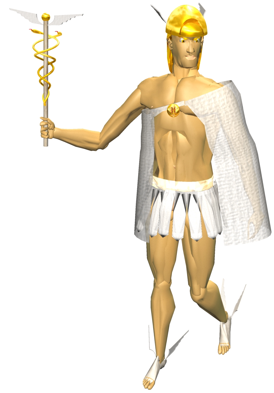 Mercúrio (Hermes), corpo inteiro, fundo branco, para uso em looks - resolução 908 x 1304 pixels