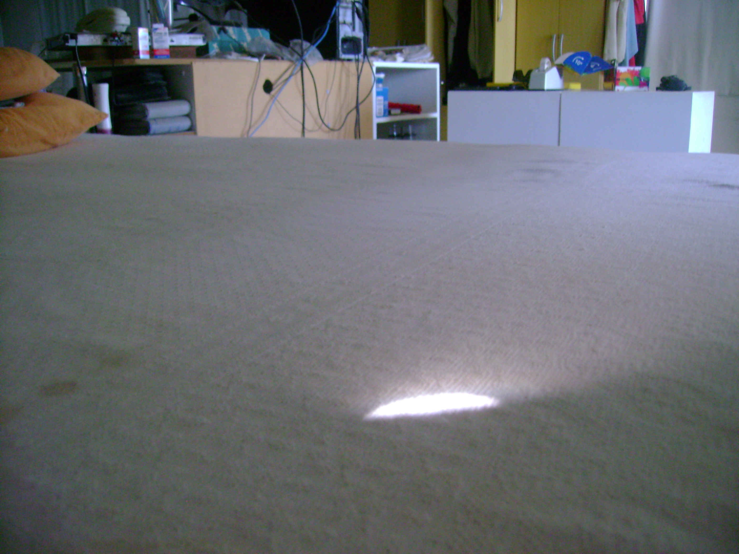 A foto não foi retocada nem se trata de montagem: qual o texto acima, é autêntica, feito as manchas na colcha, que deixei ali, porquanto sóis não sujam.