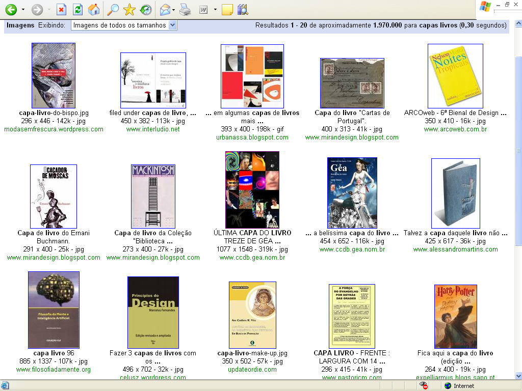 A ilustração logo abaixo mostra a parte inferior da página da pesquisa. Há outras capas de livros mais acima das aqui apresentadas, nessa página. - CCDB
