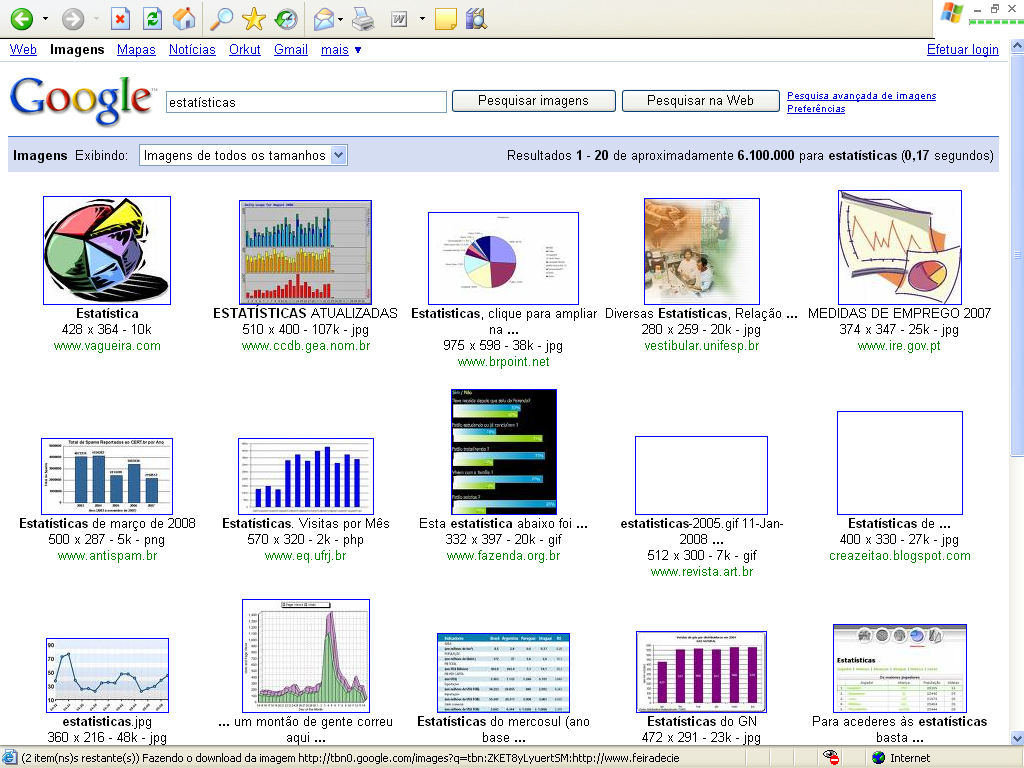 Na PRIMEIRA PÁGINA DA RESPOSTA À PESQUISA, o SEGUNDO LUGAR entre SEIS MILHÕES E CEM MIL OCORRÊNCIAS, para UMA SÓ PALAVRA: ESTATÍSTICAS!!!