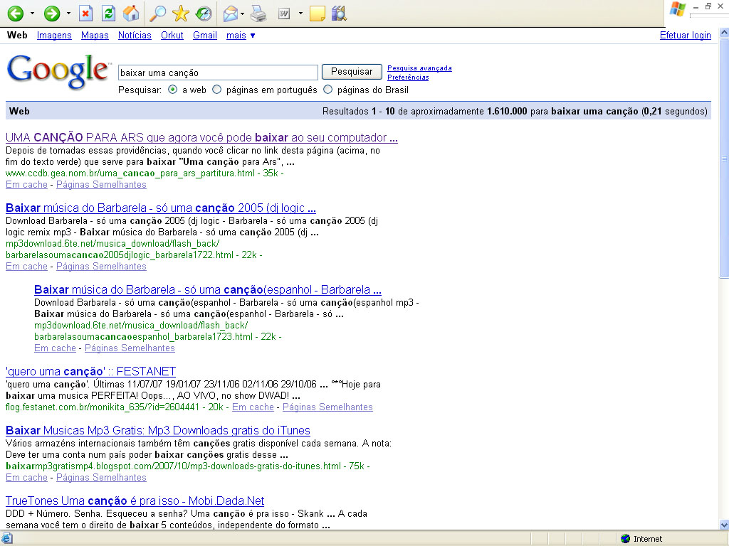Primeiro Lugar na pesquisa do Google: "Baixar uma Canção"! - CCDB - 24 de Junho de 2008