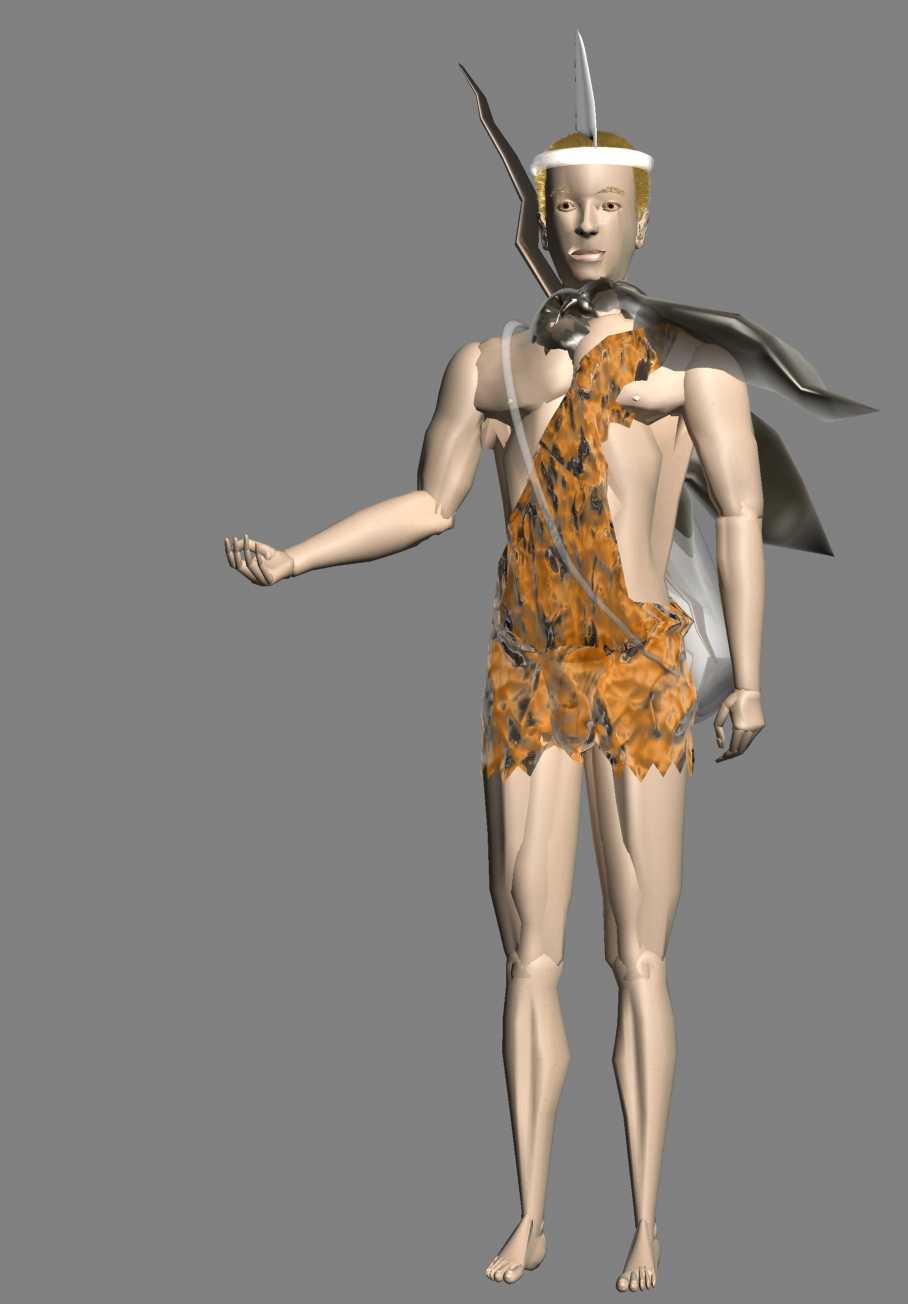 Rá com dezesseis espectros (anos), corpo inteiro, fundo cinzento, para uso em looks - resolução 908 x 1304 pixels