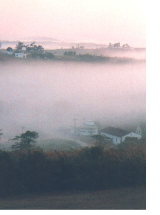 Photo (by CCDB) of the landscape which Clestis, Delícia and their son Delcles, protagonists of )que(, see in the morning, when the "matinobrumas*" suggest the worlds visited across the mirror.