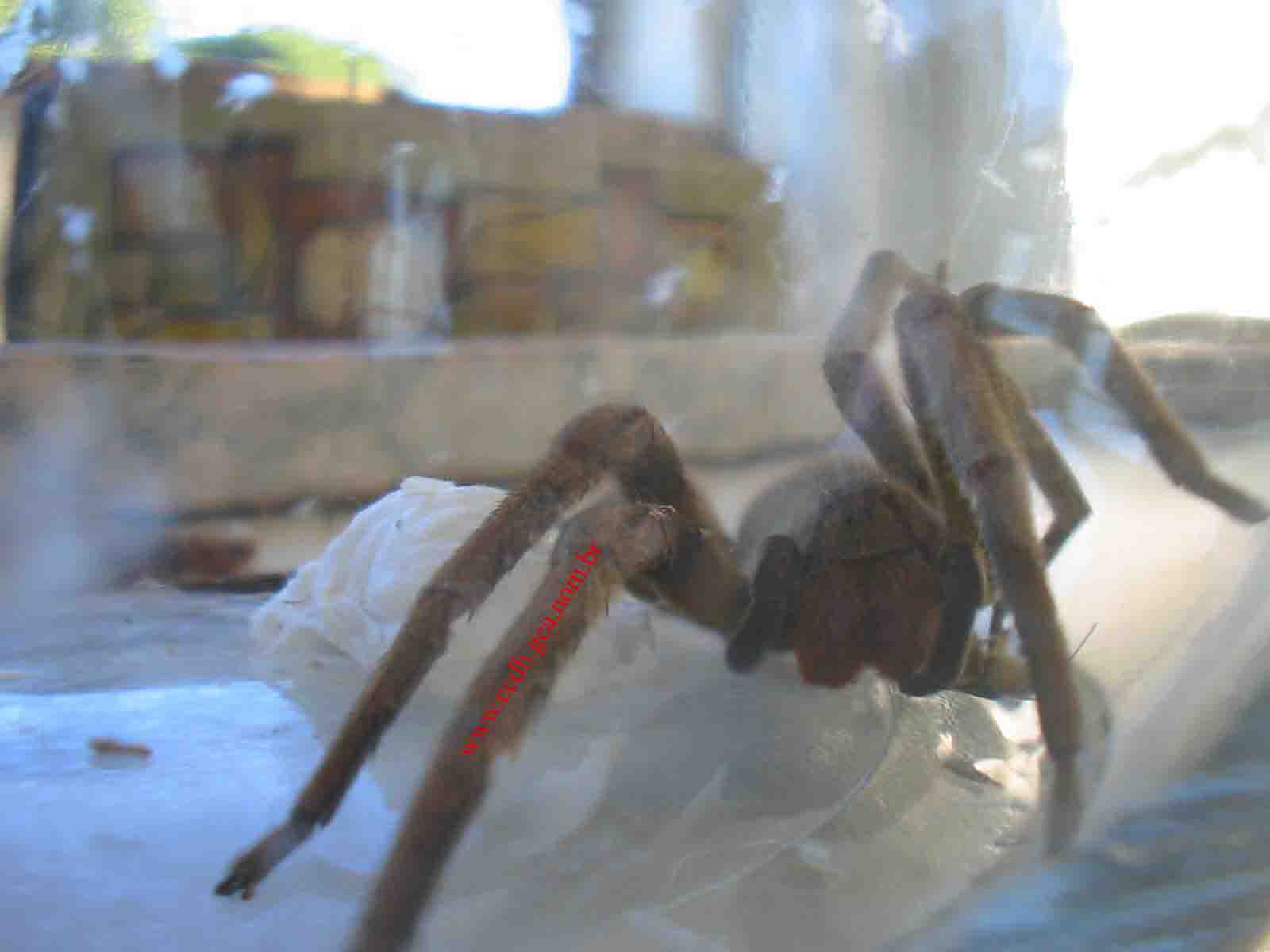 Na imagem acima, a Phoneutria mostra sua habilidade de subir no vidro.
