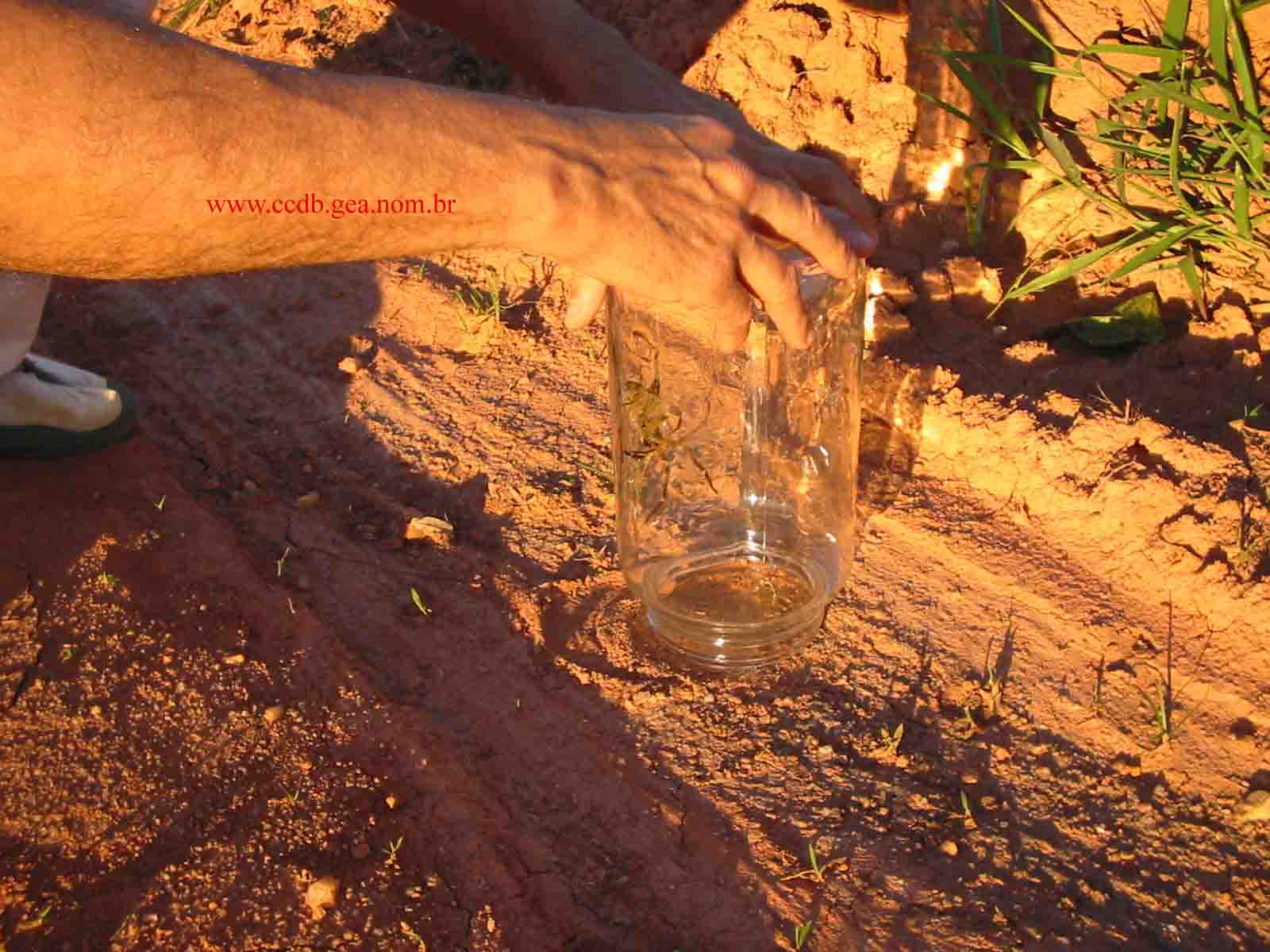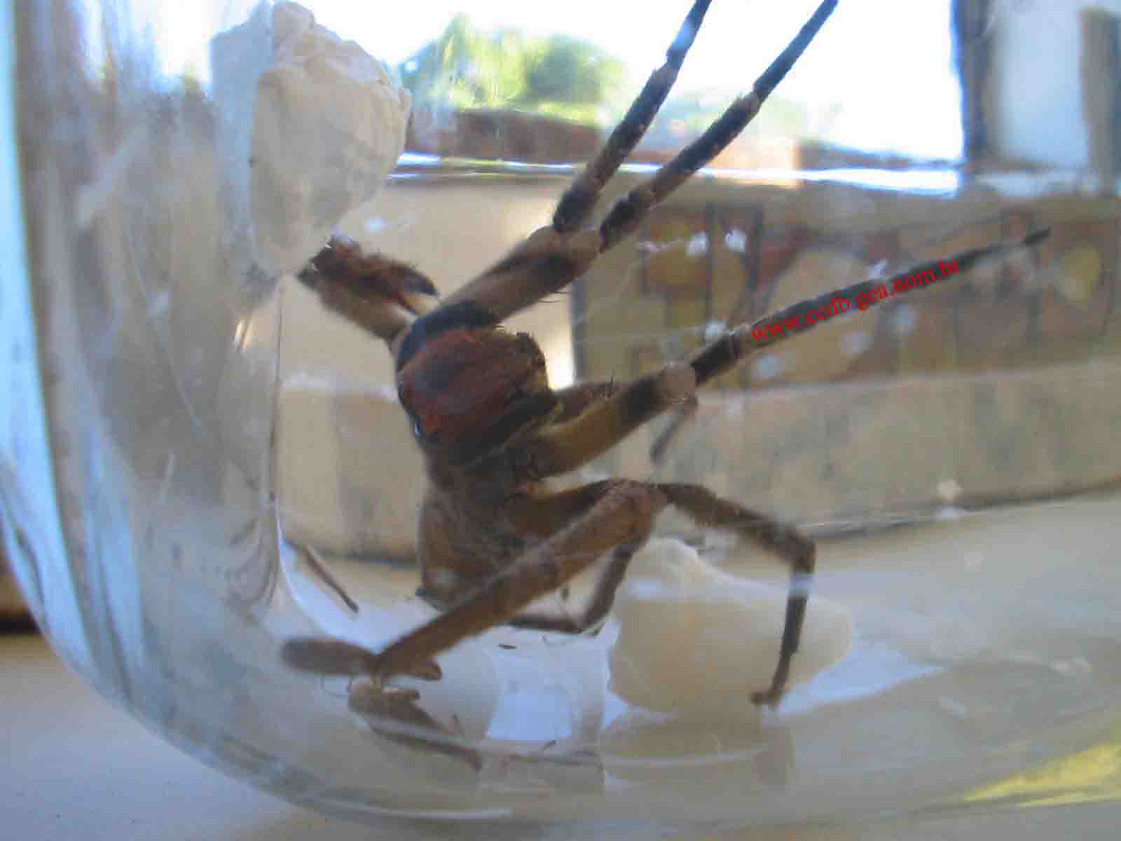Na imagem acima, bato com o vidro para forçar a Phoneutria a cair sem ferir-se sobre o chão e libertá-la.