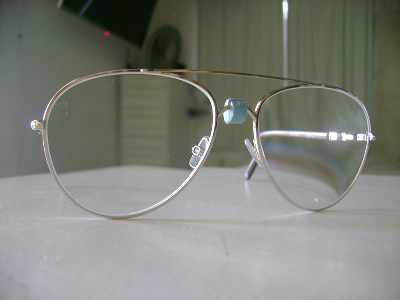 A armação dos dois pares de óculos supracitados é um dos modelos da “Alfani ©”, cujos ângulos de visão superam os que eu obtinha quando, por muitos anos, usava armação “Ray-Ban ©” do tipo grande para pilotos. Esses óculos, porém, possuem um defeito de projeto: não há haste metálica dentro das hastes que prendem os óculos às orelhas; assim, se forçarmos para ajustar essas hastes, elas se quebram no ponto mais frágil, a poucos centímetros da armação das lentes.