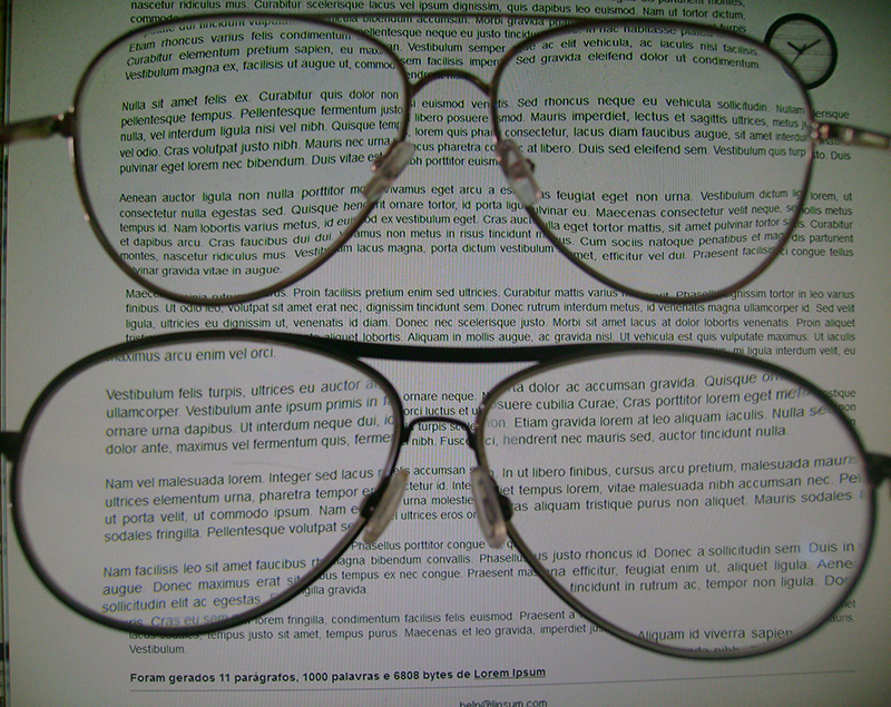 A fotografia apresenta o suporte que inventei para os óculos de uso no computador (para perto); no meu caso, com foco a quarenta e dois centímetros, lentes “Zeiss ©” monofocais “individual”, de policarbonato, logotipo “Z” gravado a LASER nas próprias lentes, revestimento anti-reflexo “Teflon ©”, conversação (além de com a ótica - “Oticas Opção” de Macaé, autorizada Zeiss © - que os forneceu) direta entre mim a fábrica “Zeiss ©” e todos os certificados de garantia, recibos e nota fiscal.