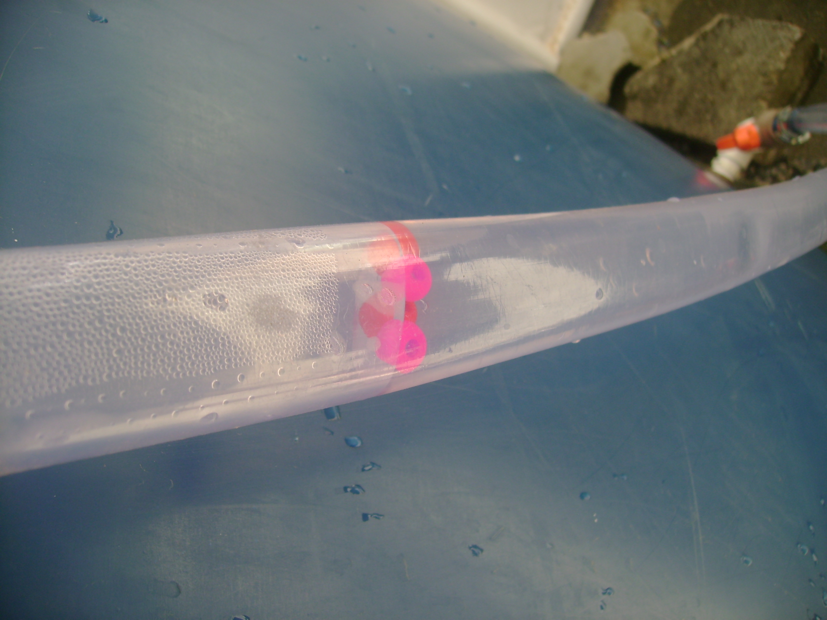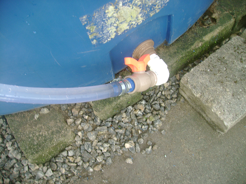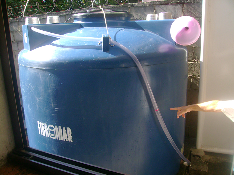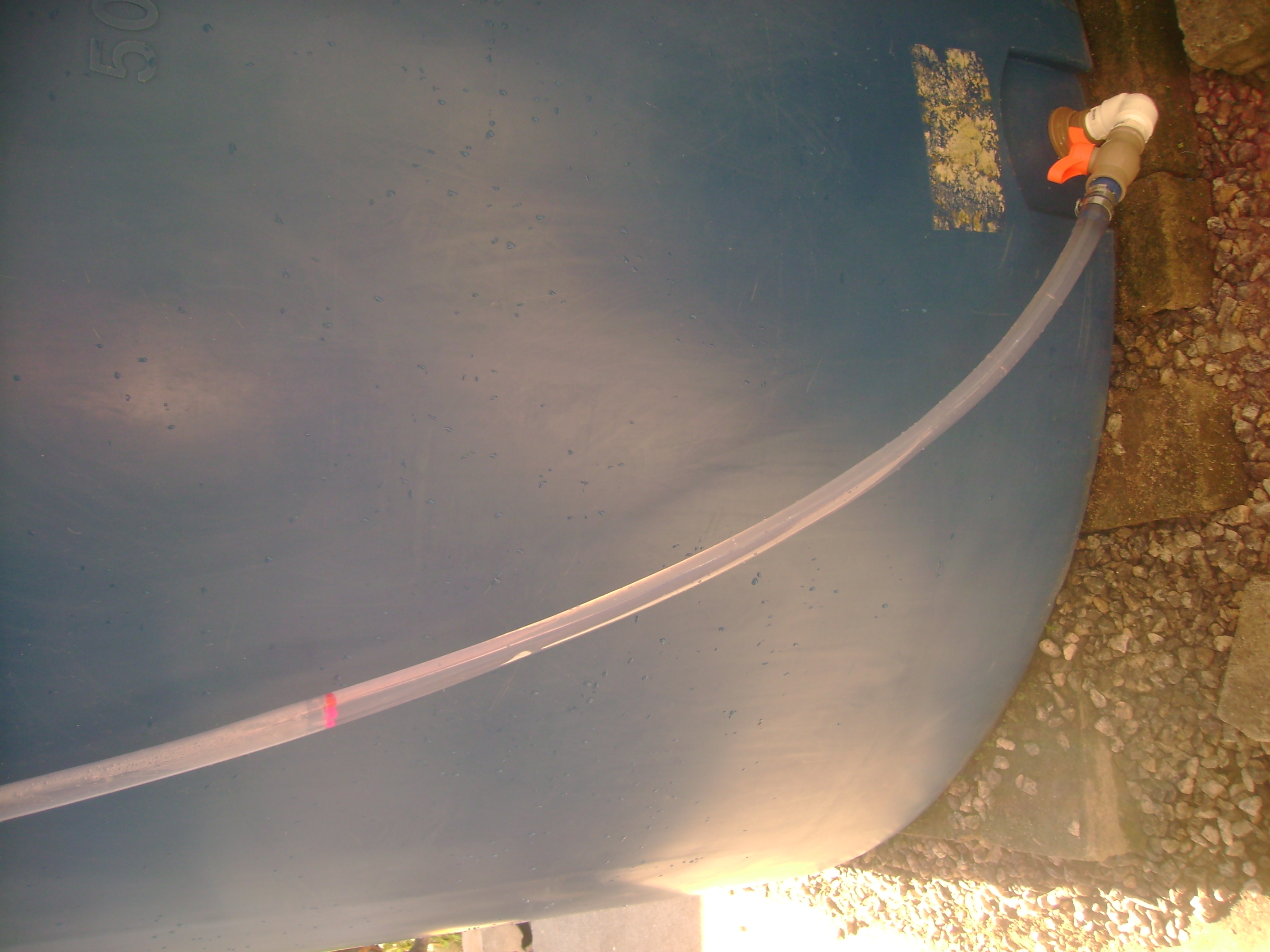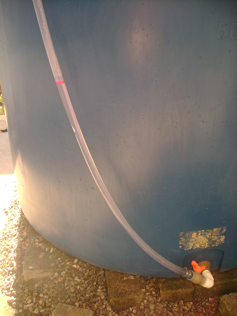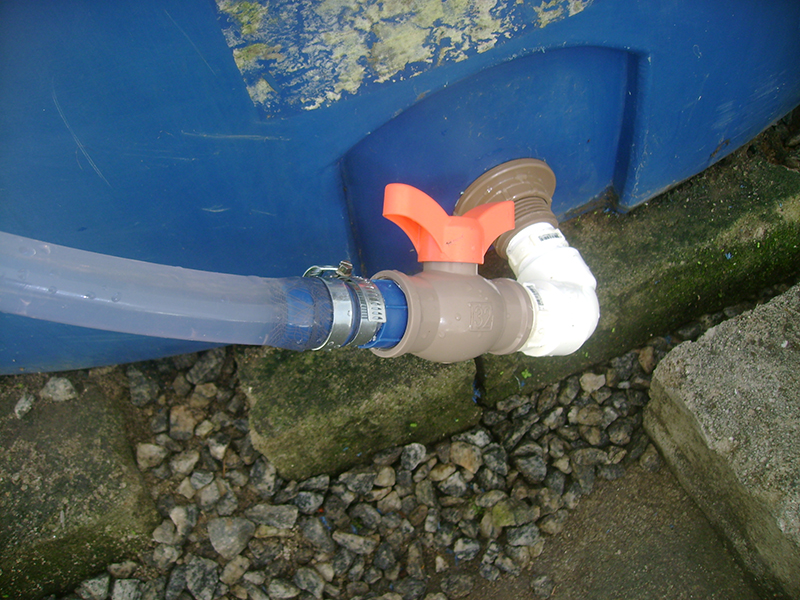 Então, em 2019, Dalgiza e eu tivemos a idéia e confeccionamos o medidor de nível, que consta da mangueira transparente com umas bolinhas plásticas coloridas dentro, uma rede no ponto de inserção da mangueira (para que as bolinhas não fluam tanque adentro quando este se esvazia) e um conjunto de peças plásticas que conecta a mangueira ao tanque (e que só não dá vazamentos porque na segunda tentativa substituímos as peças e em especial o retentor por outros, da marca Tigre - cuja propaganda faço grátis e é sincera, porquanto verdadeira).