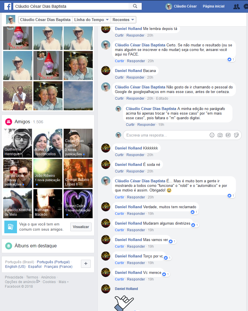 Veja a cópia de tela (screenshot) da minha publicação de 21-01-2018 no FACEbook, autoexplicativa:
