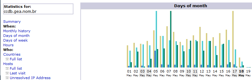 DOIS MILHÕES DE VISITANTES!!! SITE PRINCIPAL, NACIONAL, www.ccdb.gea.nom.br Tenho, desde o primeiro dia deste site no ar, as estatísticas (Webalizer e Awstats) para a comprovação a qualquer jornalista ou interessado sério e a qualquer site, com ou sem “espião” em seu nome - como o site urlespiao.com.br que MENTE ao informar visitação de um décimo do valor real e vem publicando dados mentirosos a respeito de www.ccdb.gea.nom.br. Esse valor real está comprovadíssimo na ilustração ao lado, com dados do Webalizer, de 05 de Julho de 2013.
